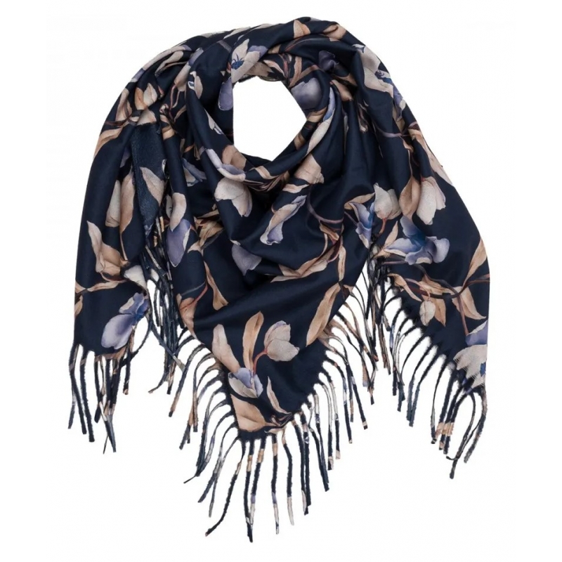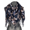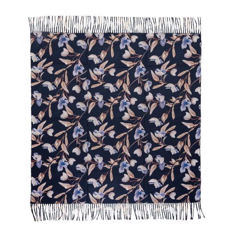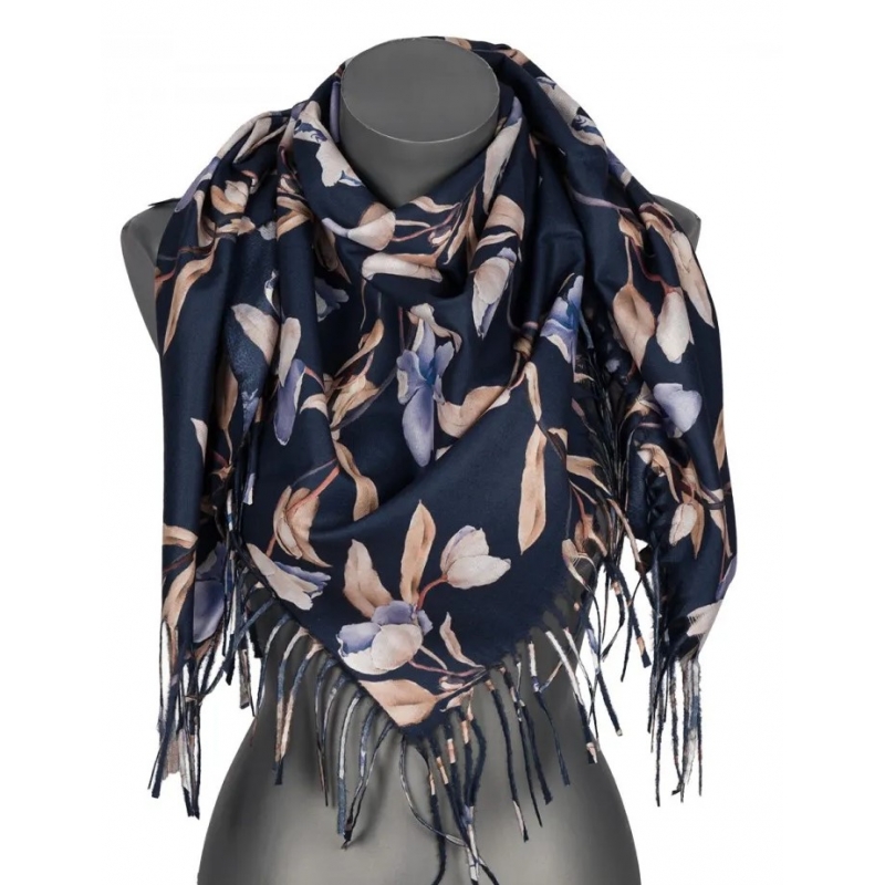 Chusta damska przejściowa w KWIATY na prezent z frędzlami RCC28-7 granat