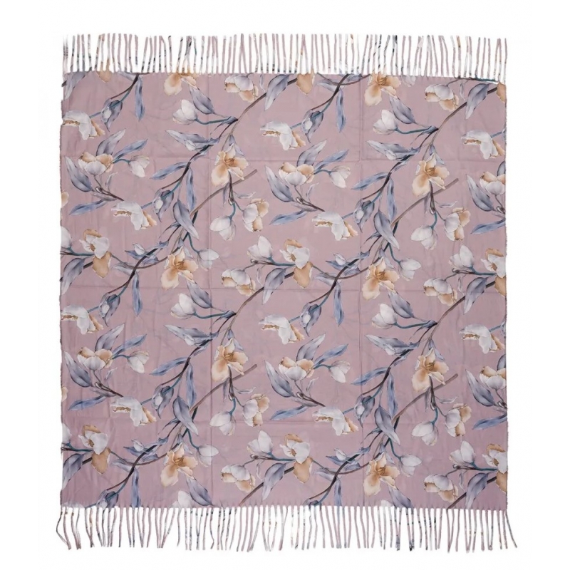 Chusta damska przejściowa w KWIATY na prezent z frędzlami RCC28-8 róż.