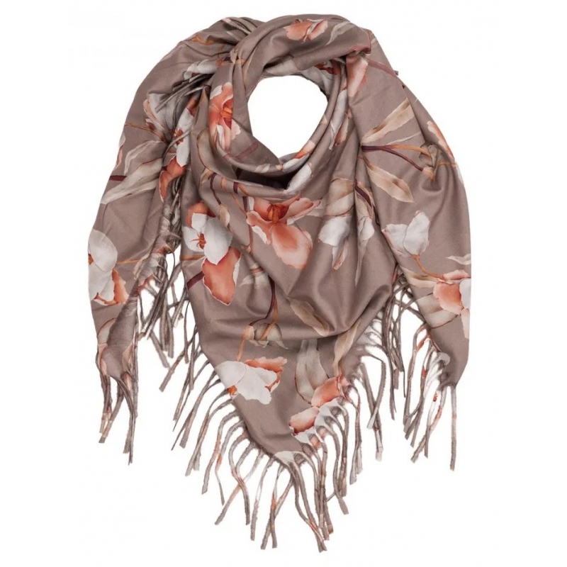 Chusta damska przejściowa w KWIATY na prezent z frędzlami RCC28-5 camel
