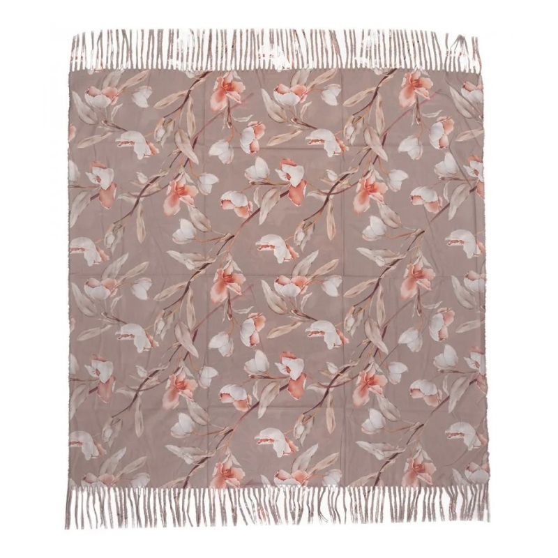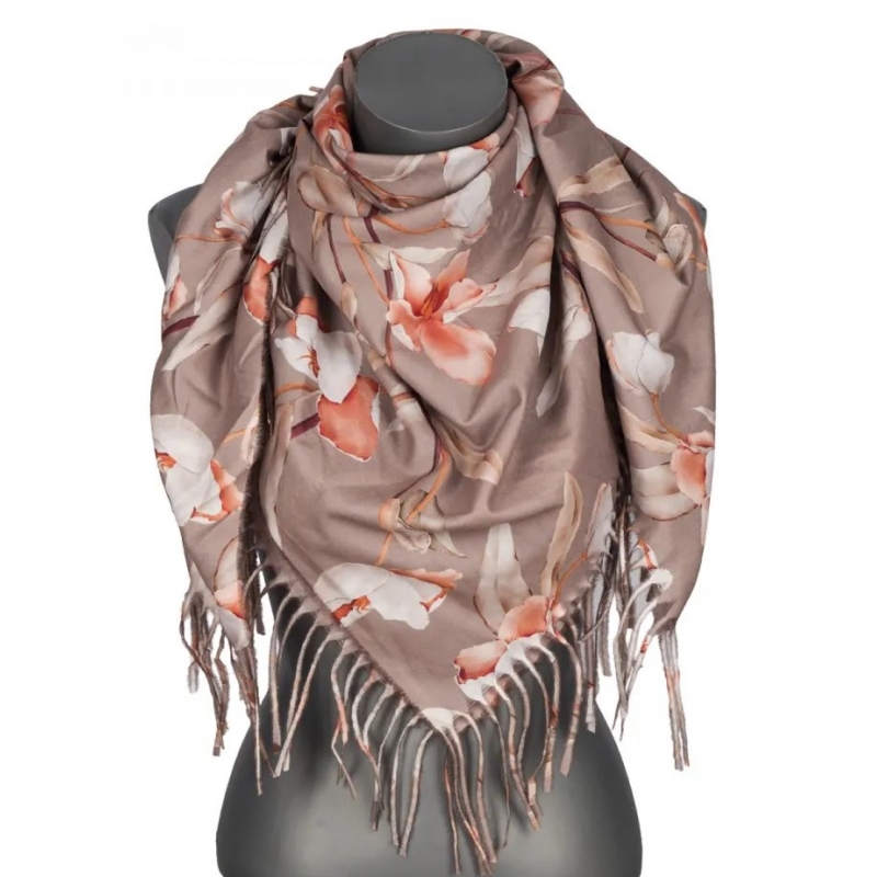 Chusta damska przejściowa w KWIATY na prezent z frędzlami RCC28-5 camel.