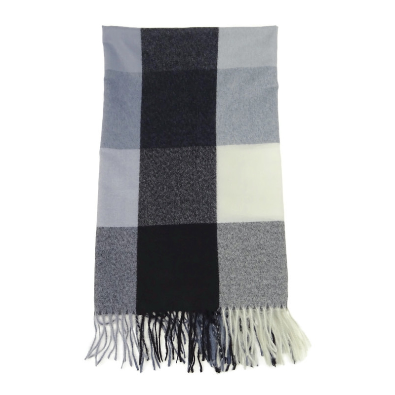 Chusta damska ciepła w KRATĘ z frędzlami AXD-13-8 czarna