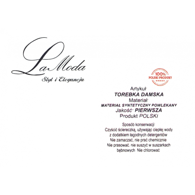 | Wielkość torebki | mała (nie mieszcząca A4) |