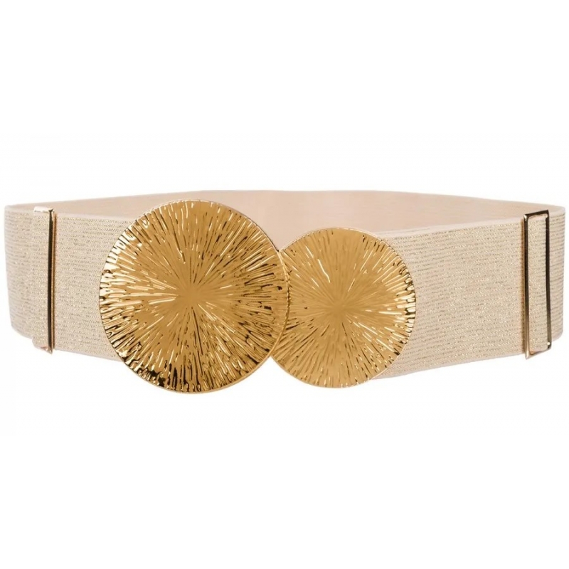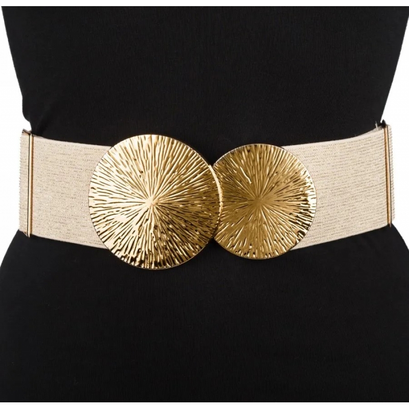 Pasek damski guma do sukienki szeroki z metalową klamrą PAS-G-13 złoty.
