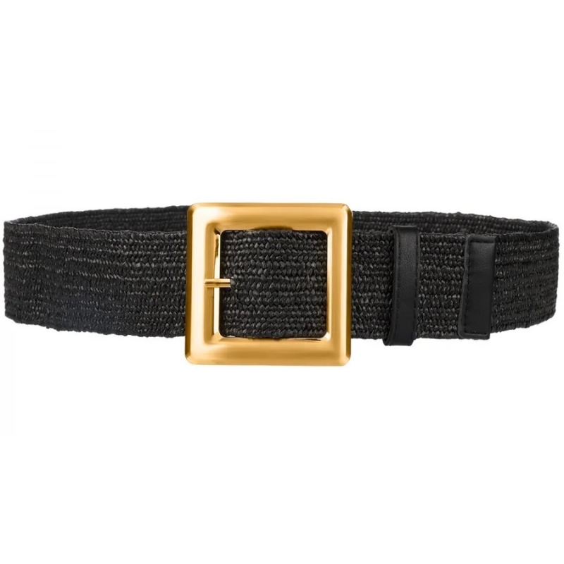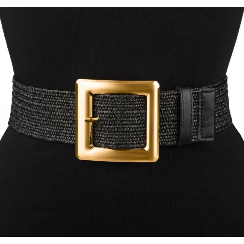 Pasek szeroki na gumie z metalową klamrą w słomkowym stylu.