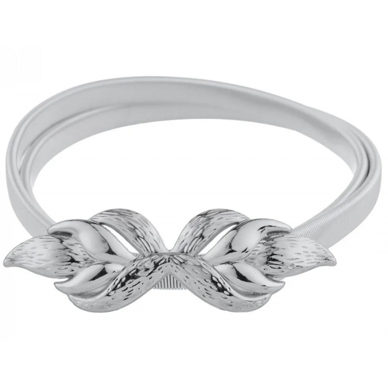 Pasek elastyczny do zapięcia w pasie ze srebrną błyszczącą klamrą .