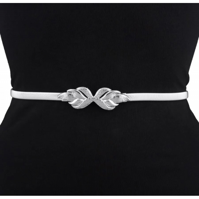 Pasek damski sprężynka do sukienki z metalową klamrą PAS-M-22 srebrny.