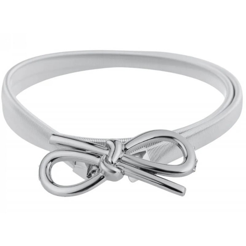 Pasek elastyczny do zapięcia w pasie ze srebrną błyszczącą klamrą .