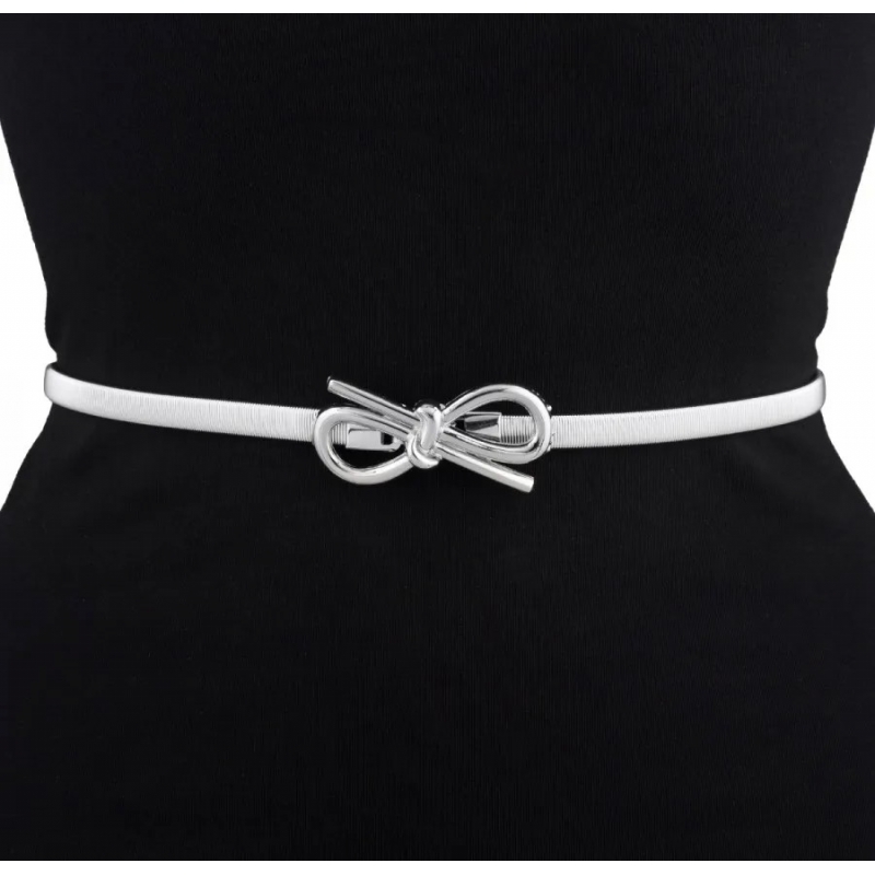 Pasek damski sprężynka do sukienki z metalową klamrą PAS-M-6 srebrny.