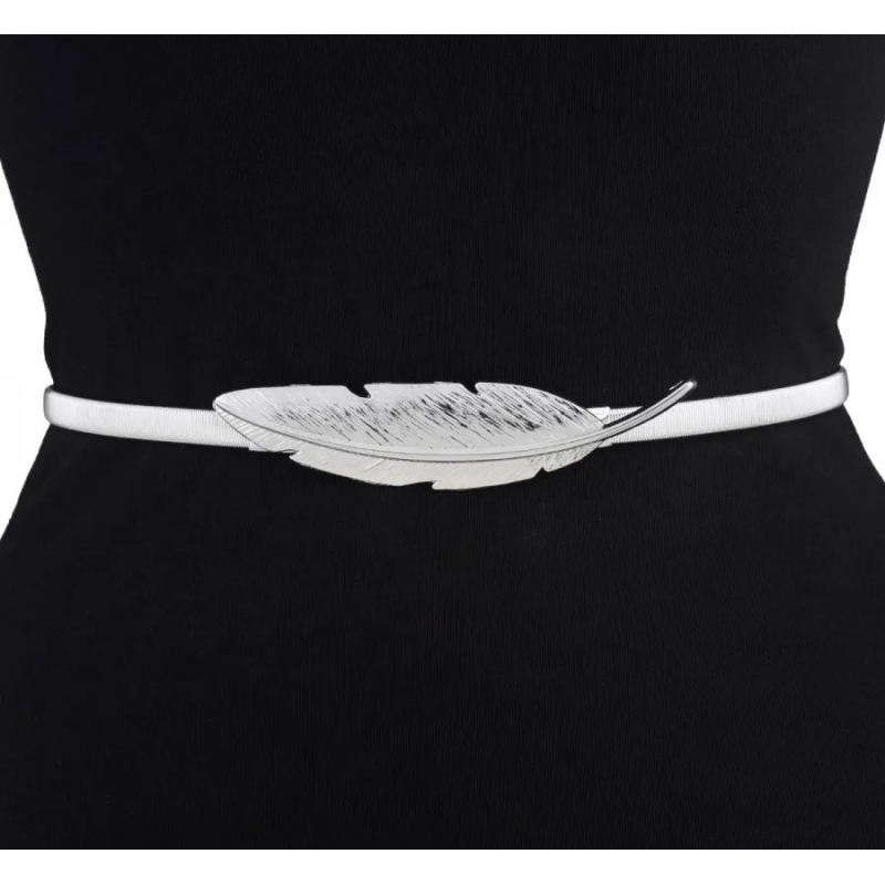 Pasek damski sprężynka do sukienki z metalową klamrą srebrny.