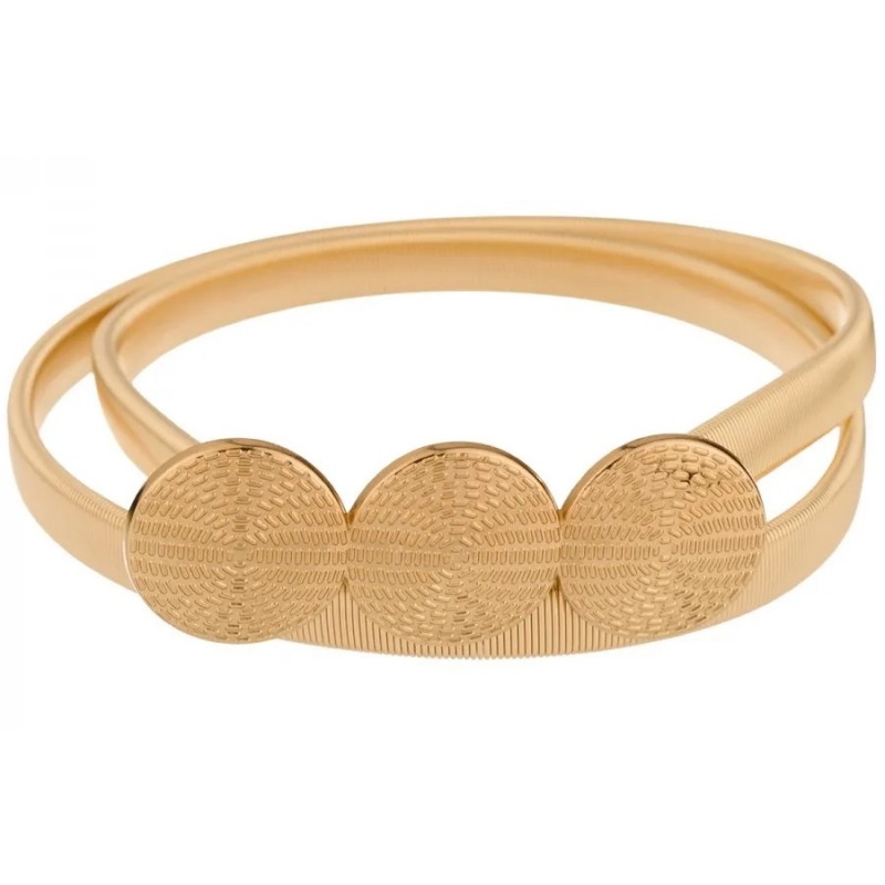 Pasek elastyczny do zapięcia w pasie ze złotą błyszczącą klamrą .