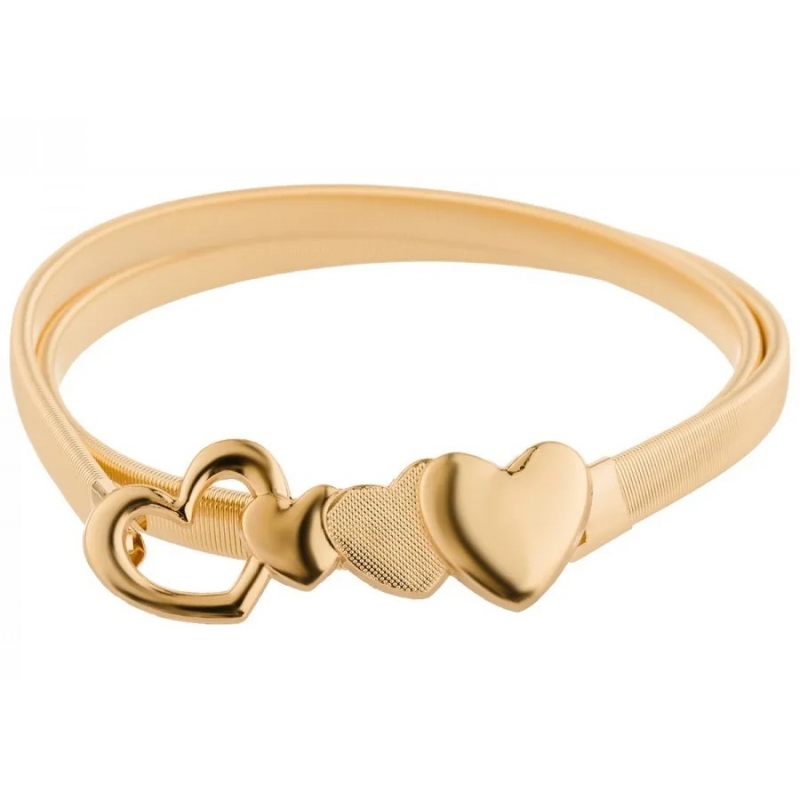 Pasek elastyczny do zapięcia w pasie ze złotą błyszczącą klamrą .