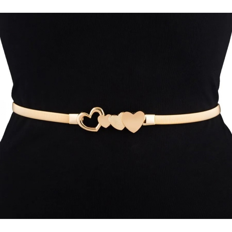 Pasek damski sprężynka do sukienki z metalową klamrą złoty.
