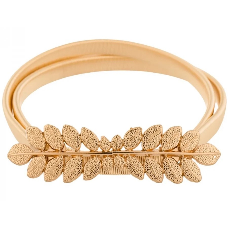 Pasek elastyczny do zapięcia w pasie ze złotą błyszczącą klamrą .