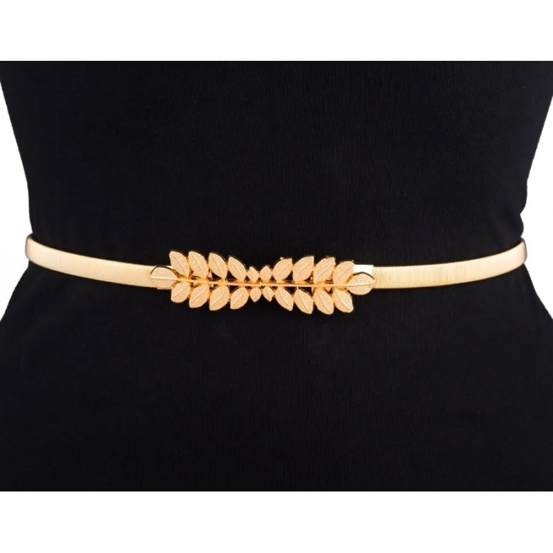 Pasek damski sprężynka do sukienki z metalową klamrą złoty.