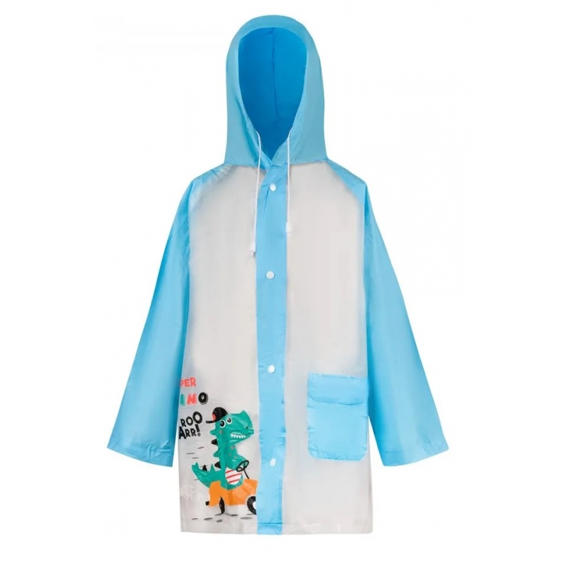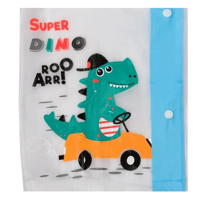 Płaszcz Przeciwdeszczowy dziecięcy z nadrukiem DINOZAUR peleryna 5M niebieski.