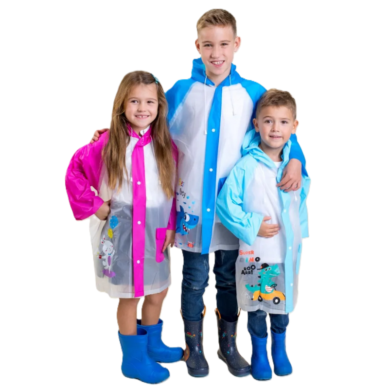 Płaszcz wodoodporny o uniwersalnym kroju dla dzieci chroni przed deszczem i wiatrem.