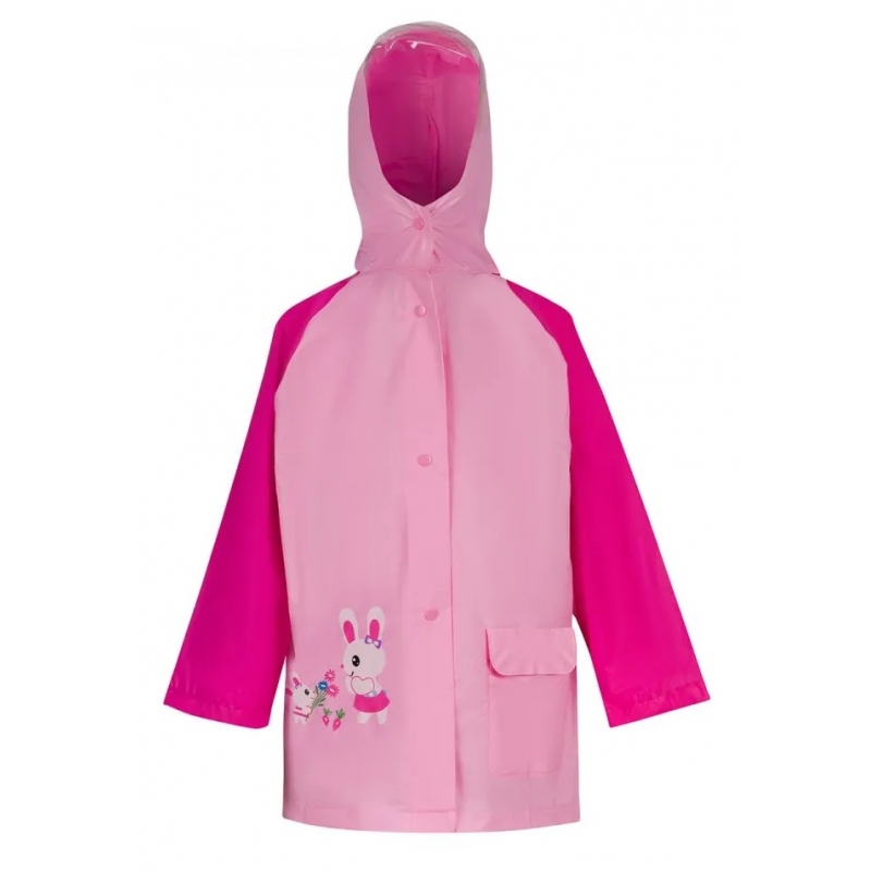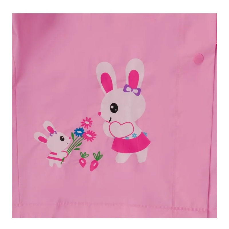 Płaszcz Przeciwdeszczowy dziecięcy z daszkiem z nadrukiem RABBIT 105-115cm  różowy.