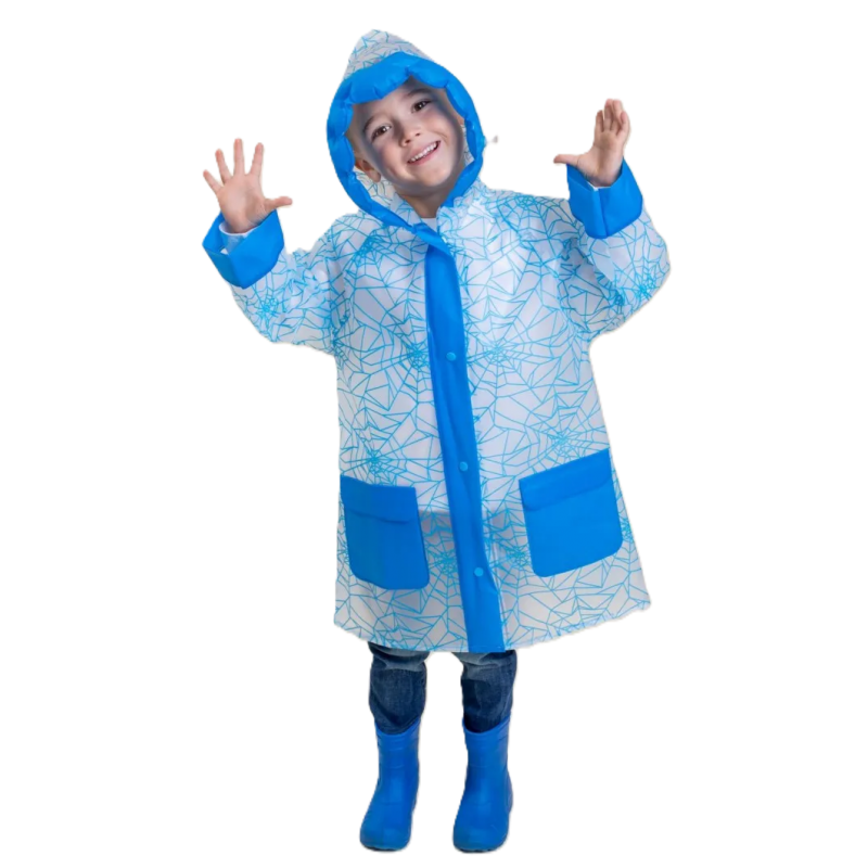 Płaszcz Przeciwdeszczowy dziecięcy z motywem PAJĘCZYNY 100-115cm PEL-DZ-16M niebieski