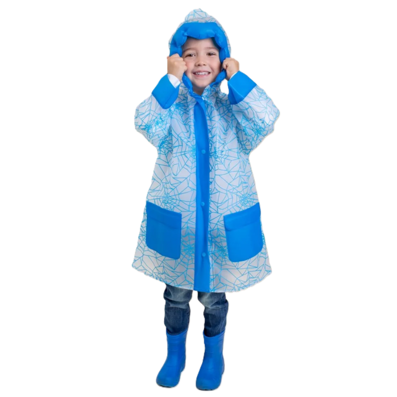 Płaszcz Przeciwdeszczowy dziecięcy z motywem PAJĘCZYNY 115-125cm PEL-DZ-16L niebieski