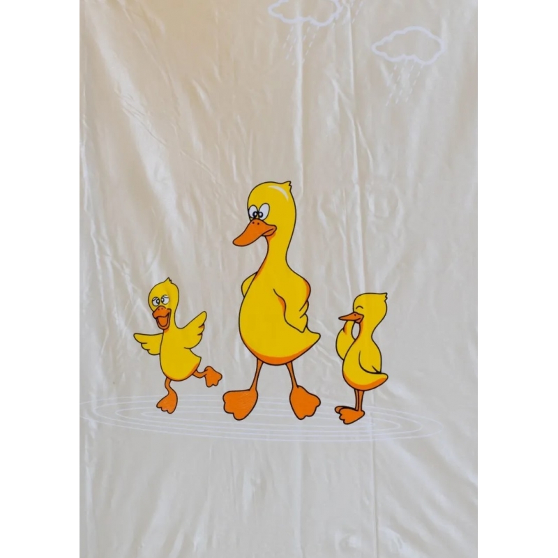 Radosny wzór – intensywny kolor i nadruk z kaczuszkami są dobrze widoczne z daleka, co poprawia humor w szare dni.