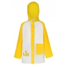Żółty płaszczyk z motywem kaczek i chmurek sprawi, że spacer w niepogodę stanie się prawdziwą frajdą.