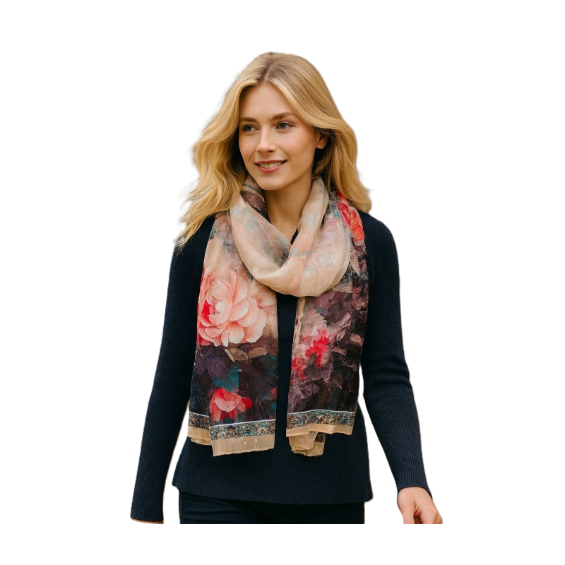 Szalik na wiosnę pod szyje z pięknym wzorem.