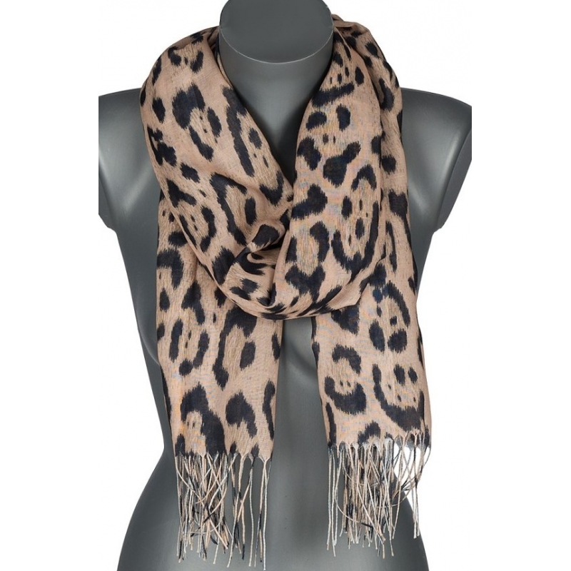 Szalik damski szal cienki wiosenny modny wzór w PANTERKĘ 180cm RC-41-2 beż.