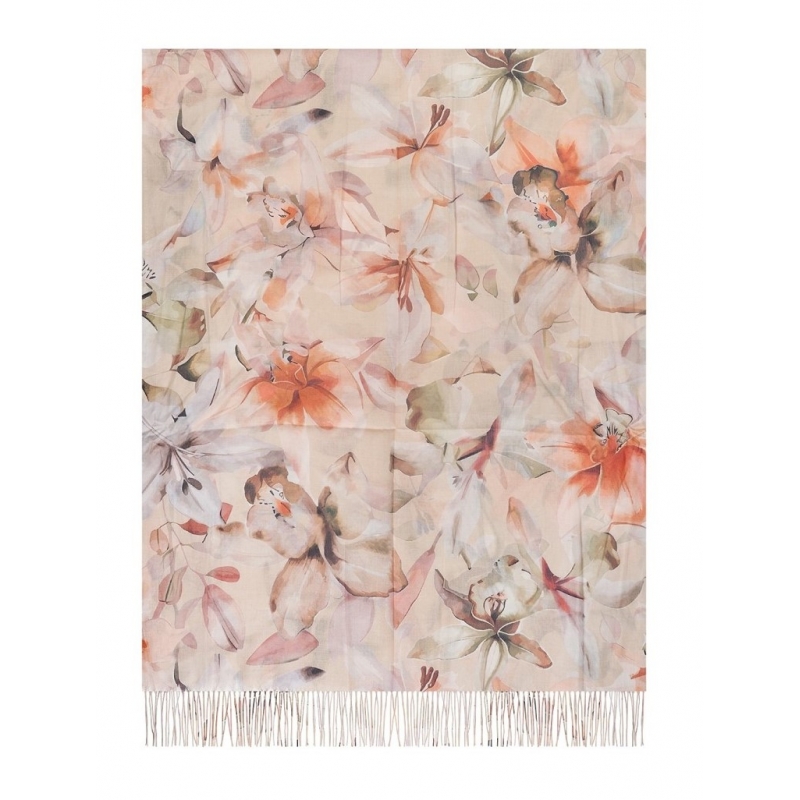 Szalik damski szal cienki wiosenny wzór w LILIE KWIATY 180cm RC-30-5 beżowy