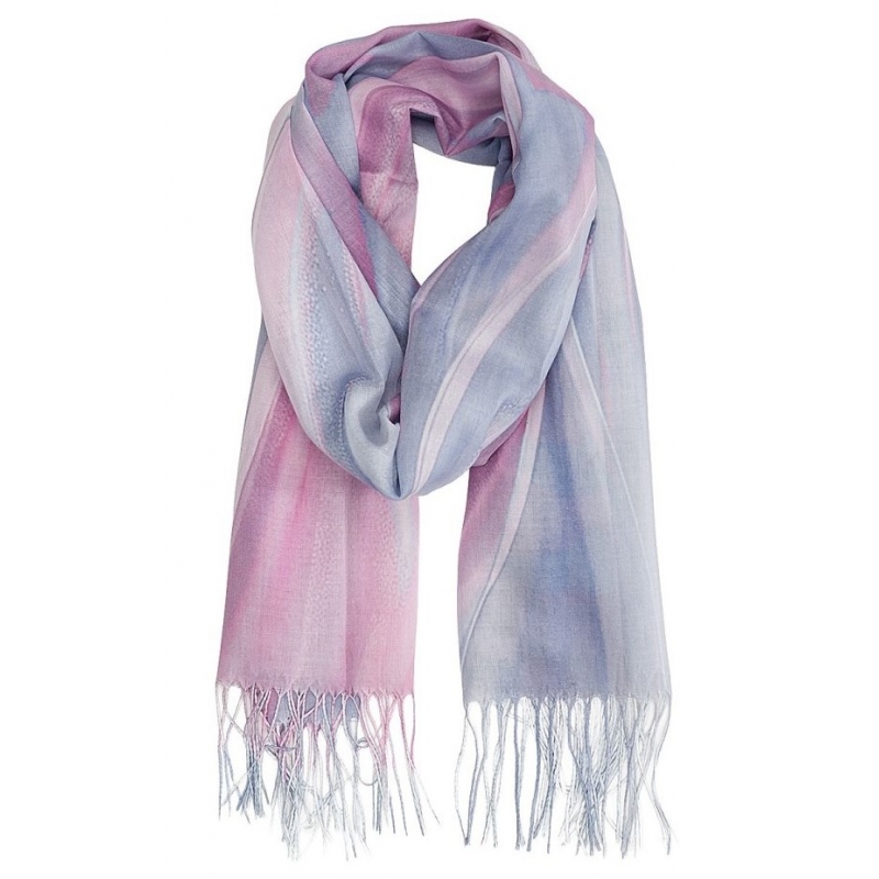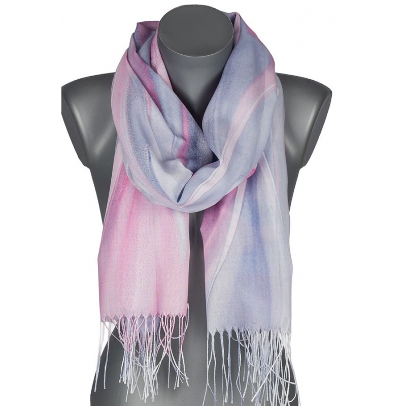 Szalik damski szal cienki wiosenny wzór TĘCZOWY OMBRE 180cm RC-40-4 szary.