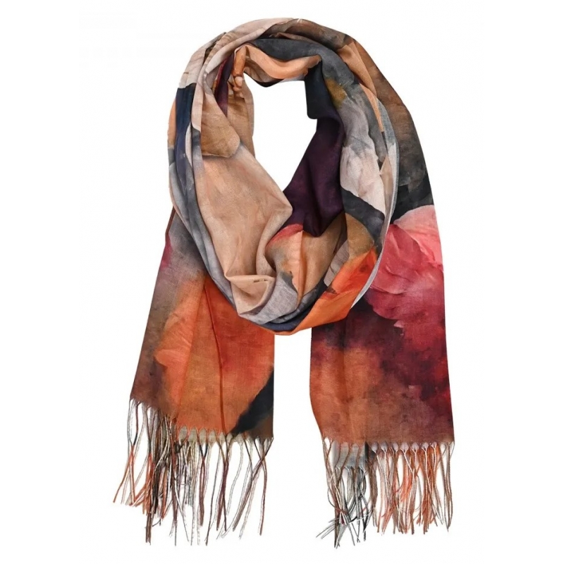 Szalik damski szal cienki wiosenny wzór KWIATY OBRAZ 180cm RC-13-8 pomarańczowy