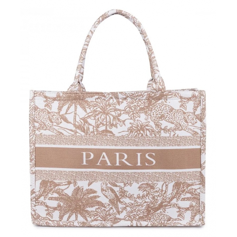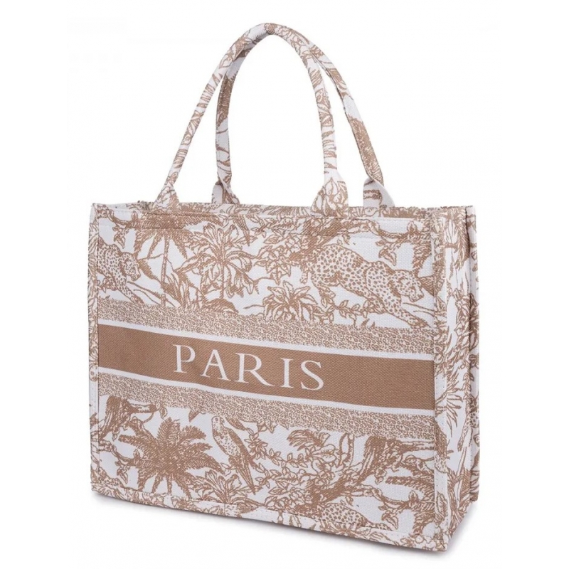 Torba miejska tote bag PARIS na zakupy na plażę z nadrukiem na zamek TOR-783 beżowy